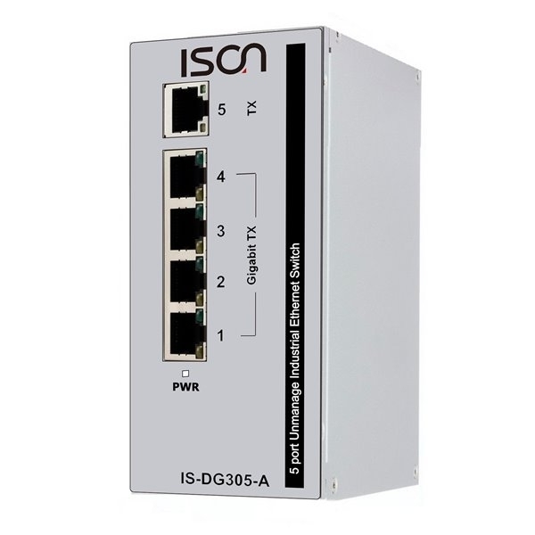 The IS-DG305-A Series are full Gigabit unmanaged Ethernet Switches that provide easy to access, plug-n-play Gigabit ports for applications; a full Gigabit network provides higher throughput than legacy Fast Ethernet network. The cost effective IS-DG305-A Series unmanaged switches can be easily used in factory production line or embedded into machine system. The IS-DG305-A Series also support some useful function by default for network traffic optimization, such as QoS and storm protection.
